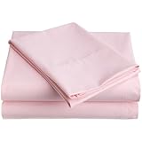 Brighten any child's room with the fresh colors and clean, cool feel of Pinzon Kids bedding. This versatile chambray twin sheet set includes a 66-by-96-inch flat sheet, 39-by-75-inch fitted sheet, and one 20-by-31-inch pillowcase. The 200-thread-count set is made of 100 percent cotton, an all-natural fiber, so it's both durable and breathable. Percale woven fabrics are crisp yet soft; the yarn-dye fibers are tightly woven for smoothness. The fitted sheet, with elastic all around, fits snugly on mattresses up to 12 inches deep. The flat sheet and pillowcases feature a single-stitch, four-inch hem. This soft pink set can be mixed and matched with the Pinzon Kids chambray or gingham sheets, duvet covers, and shams for a classic ensemble. Pinzon Kids sheets wash and dry easily in the home machine and are made in Portugal.