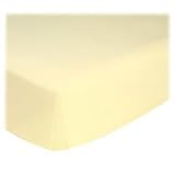 This luxurious plush 100% cotton "jersey knit" sheet is made of the highest quality fabric that's measured at 150 gsm (grams per square meter). That means these are softer than your favorite t-shirt, and as soft as flannel. Sheets are made with deep pockets and are elasticized around the entire edge which prevents it from slipping off the mattress, thereby keeping your baby safe. These sheets are so durable that they will last all through your baby's growing years. We're called sheetworld because we produce the highest grade sheets on the market today. Color is a solid soft yellow.