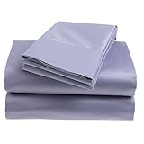 Bring home the feeling of the most luxurious resort hotel--without spending $500 a night--with this affordable set of 1000-thread-count sheets for Queen beds. This set features a lilac hue and includes a flat sheet, fitted sheet, and two standard pillowcases. They're made from 100 percent combed cotton, which will only get softer with each washing. They have a sateen fabric weave, where most threads are placed on the surface, giving it a glossy, lustrous shine and a feel as luxurious as silk. This set features an oversize flat sheet, a fitted sheet with all-around elastic that fits mattresses up to 18 inches deep, and a 4-inch hem on the flat sheet and pillowcases with self piping. Machine wash and tumble dry for easy care.