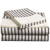 This four-piece sheet set offers a sophisticated coordinate to Tommy Hilfiger's opulent House on the Hill bedding collection. Casually elegant stripes adorn the collection set, which includes a flat sheet, fitted sheet, and two standard pillowcases sewn from 300-thread-count 100-percent cotton sateen, brushed during the finishing process for extra softness. A chocolate border sets off the decorative ivory cuff of the top sheet and pillowcase hems. Though part of a collection that includes a coordinating comforter, duvet, decorative shams and pillows, this versatile sheet set employs a palette of soothing hues that pairs as well with other bedding and with many room decors. The fitted sheet has generous corners to accommodate deeper mattresses up to 18 inches thick, and the flat sheet fits most queen mattresses. The easy-to-care-for set is machine washable.