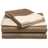 Complement the casually contemporary, beach-inspired comforter from the Nautica Westwind collection with this complete set of chocolate-hued sheets for Full beds, which includes a flat sheet, fitted sheet, and two standard-sized pillowcases. They feature a solid light chocolate coloring, and the flat sheet and pillowcases are accented with a biscuit-hued cuff with aqua blue piping. The fitted sheet measures 60 by 80 inches and will fit mattress up to 18 inches thick. The flat sheet measures 90 by 102 inches and the two pillowcases measure 20 by 30 inches. Machine wash and tumble dry for easy care. Imported.
