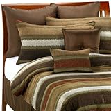 Warm and inviting, this super soft chenille comforter set will make a statement in your master room. Comforter set comes alive in shades of rich earthen colors such as reds, greens and browns. Comforter set is accented with a very fine faux silk chocolate brown fabric on bedskirt and euro shams. Set Includes: Comforter, Bedskirt, 2-Shams, 2-Euro Shams, 1-Breakfast Pillow,1-Square Pillow. Machine Washable.